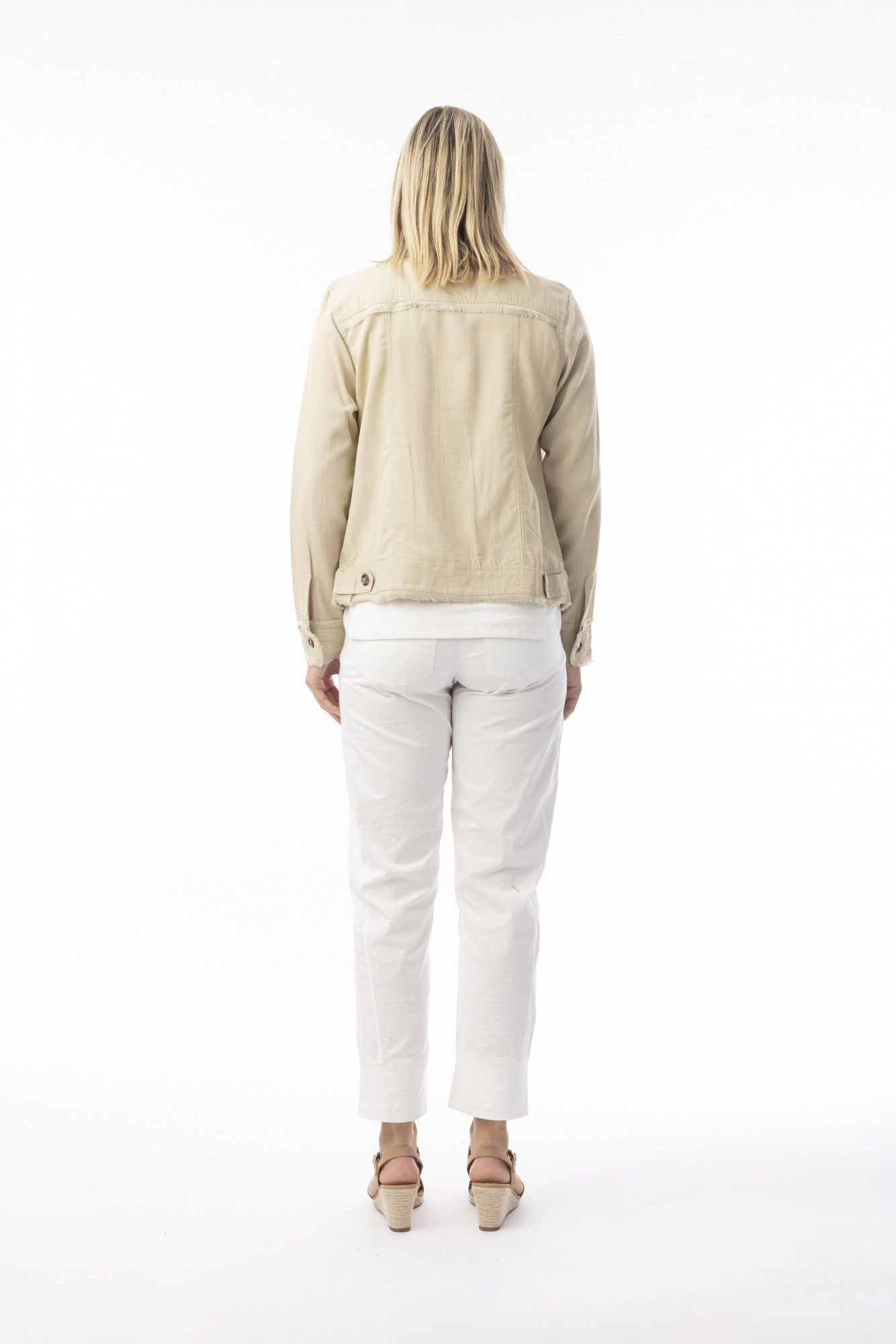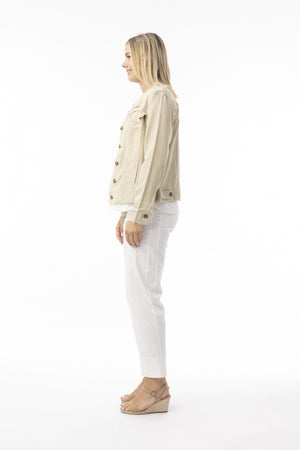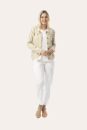 Step into summer with our Linen Blend Jacket, the perfect solution to summer layering. Featuring stylish frayed trim and front bust pockets, this jacket combines casual elegance with practical design. Perfect for layering, it offers both comfort and chic appeal, making it a versatile addition to any outfit.